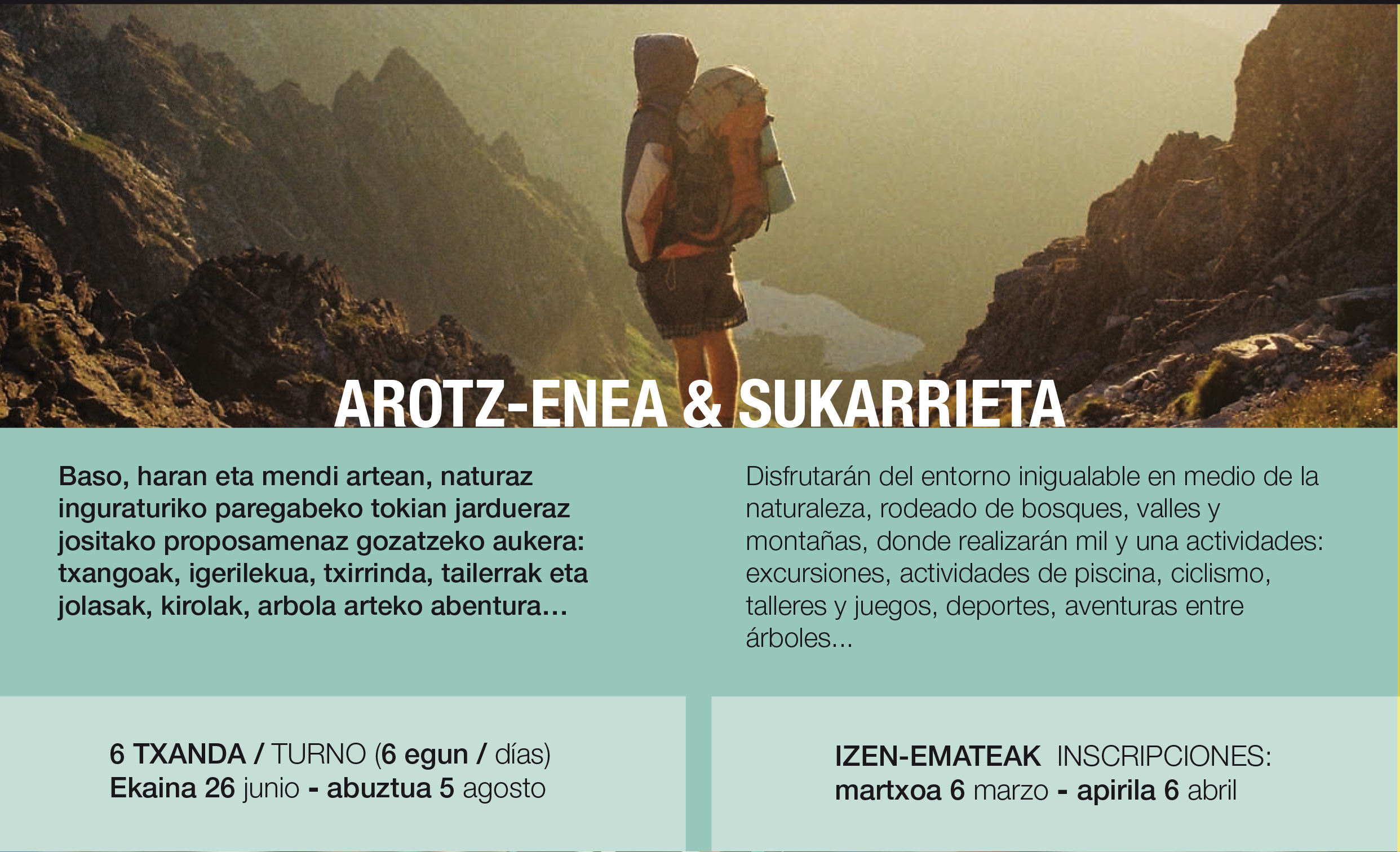 El lunes se abre el plazo de inscripción para los programas Gaztedi e #izanezberdin que proponen para esta primavera y verano multitud de actividades que abarcan los ámbitos de las nuevas tecnologías, la ciencia, el medioambiente (en Ekogunea y Arotz-Enea), el deporte (colonias de triatlón y ajedrez), viajes y estancias, cursos de idiomas asociados a diferentes propuestas, talleres creativos… y han dotado de un aire completamente renovado a planteamientos tradicionales como las colonias de verano.